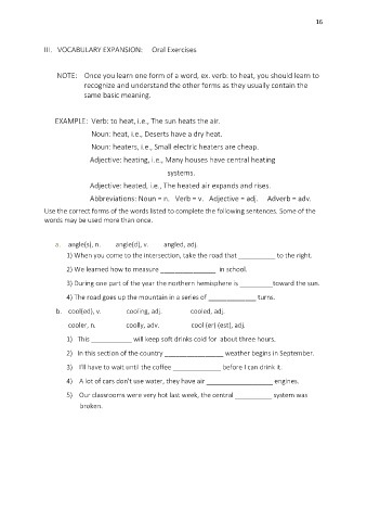 III. VOCABULARY EXPANSION: Oral Exercises