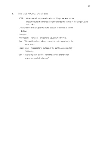II. SENTENCE PRACTICE: Oral Exercises