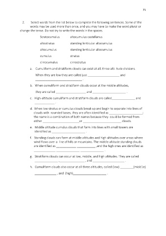 h. Cumuliform clouds also occur at all three altitudes, called (low) ________(midd1e)