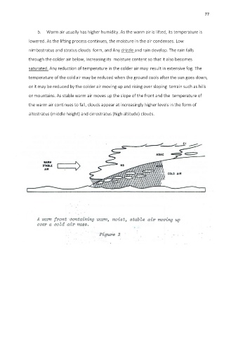 b. Warm air usually has higher humidity. As the warm air is lifted, its temperature is