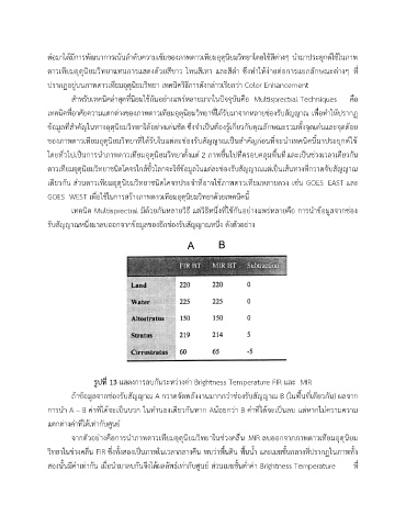 สองนั้นมีค่าเท่ากัน เมื่อนำมาลบกันจึงได้ผลลัพธ์เท่ากับศูนย์ ส่วนเมฆชั้นต่ำค่า Brightness Temperature ท ี่