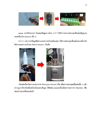 ตัวอย่าง เช่น หากข้อมลทิศทางและความเร็วลมไมแสดง ให้ตรวจสอบจุดเชื่อมต่อของเครื่องวด