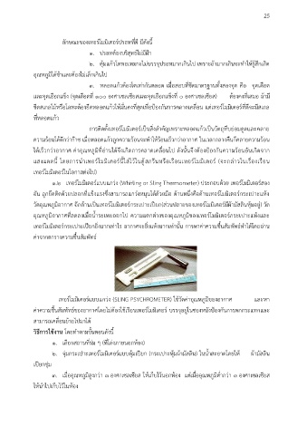 เทอร์โมมิเตอร์กระเปาะเปียกยิ่งมากเทาไร อากาศจะยิ่งแห้งมากเท่านั้น การหาค่าความชื้นสัมพัทธ์ท าได้โดยอาน