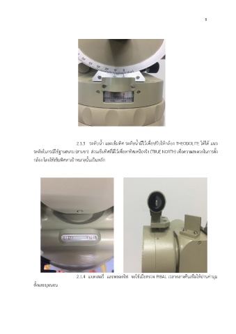 2.1.3 ระดับน้ำ และเข็มทิศ ระดับน้ำมีไว้เพื่อปรับให้กล้อง THEODOLITE ให้ได้ แนว