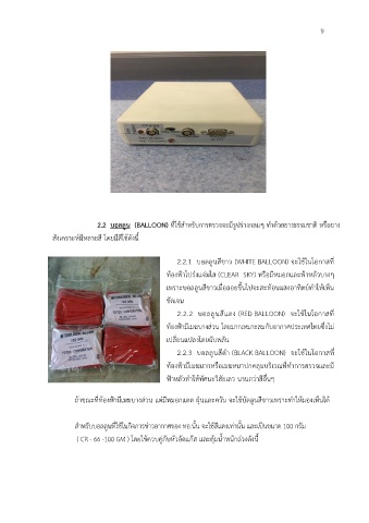 2.2 บอลลูน (BALLOON) ที่ใช้สำหรับการตรวจจะมีรูปร่างกลมๆ ทำด้วยยางธรรมชาติ หรือยาง