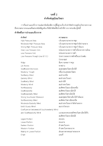 สื่อความหมายของแผนที่แต่ละชนิดได้ถูกต้อง ซึ่งมีคำศพท์ที่เจ้าหน้าที่ข่าวอากาศจะต้องรู้ดังนี้
