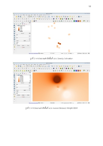 18 ี่ รูปท 2 การประมาณค่าเชิงพื้นที่ แบบ Density Estimation รูปท 3 การประมาณค่าเชิงพื้นที่ แบบ Inverse Distance Weight (IDW) ี่