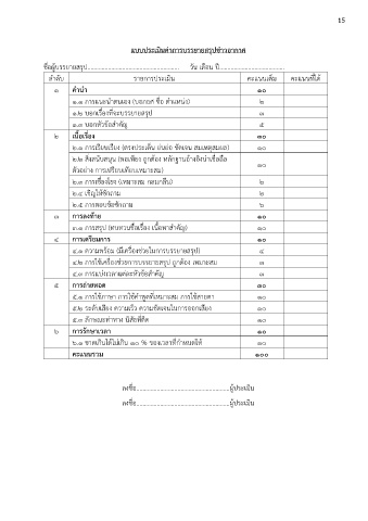 ลำดับ รายการประเมิน คะแนนเต็ม คะแนนที่ได้