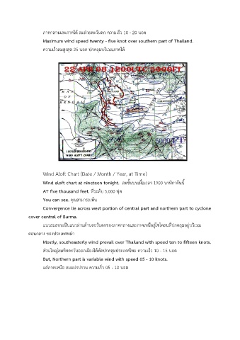 Wind aloft chart at nineteen tonight. ลมชั้นบนเมื่อเวลา 1900 นาฬิกาคืนนี้