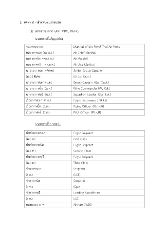 (1) ยศทหารอากาศ (AIR FORCE RANK)