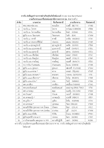 ตารางที่ 2 นามเรียกขานและชื่อย่อของสถานีตรวจอากาศ ทอ. การรับ-ส่งข้อมูลข่าวอากาศผ่านวิทยุซิงเกิล