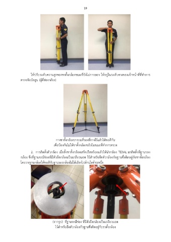 ให้ปรับระดบความสงของขาตงกลองขณะทยังไม่กางออก ให้อยู่ในระดบคางของเจาหน้าทททาการ