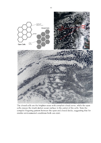 The closed cells are the brighter areas with complete cloud cover, while the open