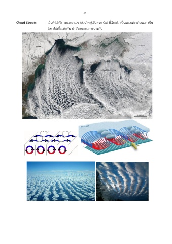 56 Cloud Streets เป็นค าใช้เรียกแนวของเมฆ (ส่วนใหญ่เป็นพวก Cu) ที่เรียงตัว เป็นแนวแต่ละก้อนแยกเป็น อิสระไม่เชื่อมต่อกัน มักเกิดหลายแถวขนานกัน