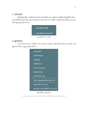 นำแผนที่หรือภาพเรดาร์ตรวจอากาศเข้าในระบบบริการข่าวอากาศเพื่อการบินโดยต้องไปที่เมนู UPLOAD
