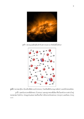 รูปที่ 5 พลาสมาสุริยะ (นิวเคลียสไฮโดรเจน(โปรตรอน), นิวเคลียสฮีเลียม(อนุภาคอัลฟา) และอิเล็กตรอนอิสระ