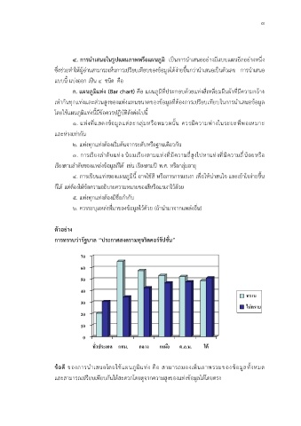 ก. แผนภูมิแทง (Bar chart) คอ แผนภูมิที่ประกอบดวยแท่งสี่เหลี่ยมผืนผ้าที่มีความกว้าง