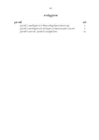 (ค) 5 สารบัญรูปภาพ รูปภาพที่ หน้า รูปภาพที่ 1 แสดงข้อมูลข่าวอากาศในระบบข้อมูลบัญชาการและควบคุม 9 รูปภาพที่ 2 แสดงข้อมูลระบบรับ-ส่ง ข้อมูลข่าอากาศและภาพ ยุทธการ ทอ.999 9 รูปภาพที่ 3 แสดง URL และหน้าเว็บกรมอุตุนิยมวิทยา 10