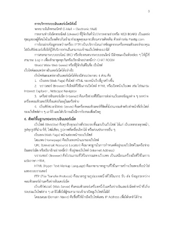 3. เครือข่ายอินเตอร์เน็ต (Internet) คือเครือข่ายที่ใช้ในการส่งผ่านเว็บเพจข้อมูลต่าง ๆ ระหว่าง